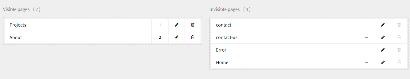 So, status is set to false which means you can’t change the visibility of the page, until you change this setting to true.