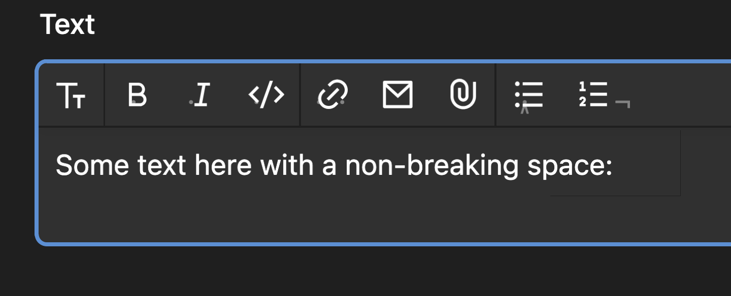 I didn’t know about the Hidden Characters plugin — that’s a great thing! What I have done before is to create placeholders. I’ll share that simple solution here in case it is useful for someone. The benefit of it is that it might be easier for some editors, can be used literally everywhere (page titles etc) and becomes very visible and intentional. The con is … it is very visible, maybe ugly? Plus you have to remember to use kirbytext() / kirbytextinline() in your templates.