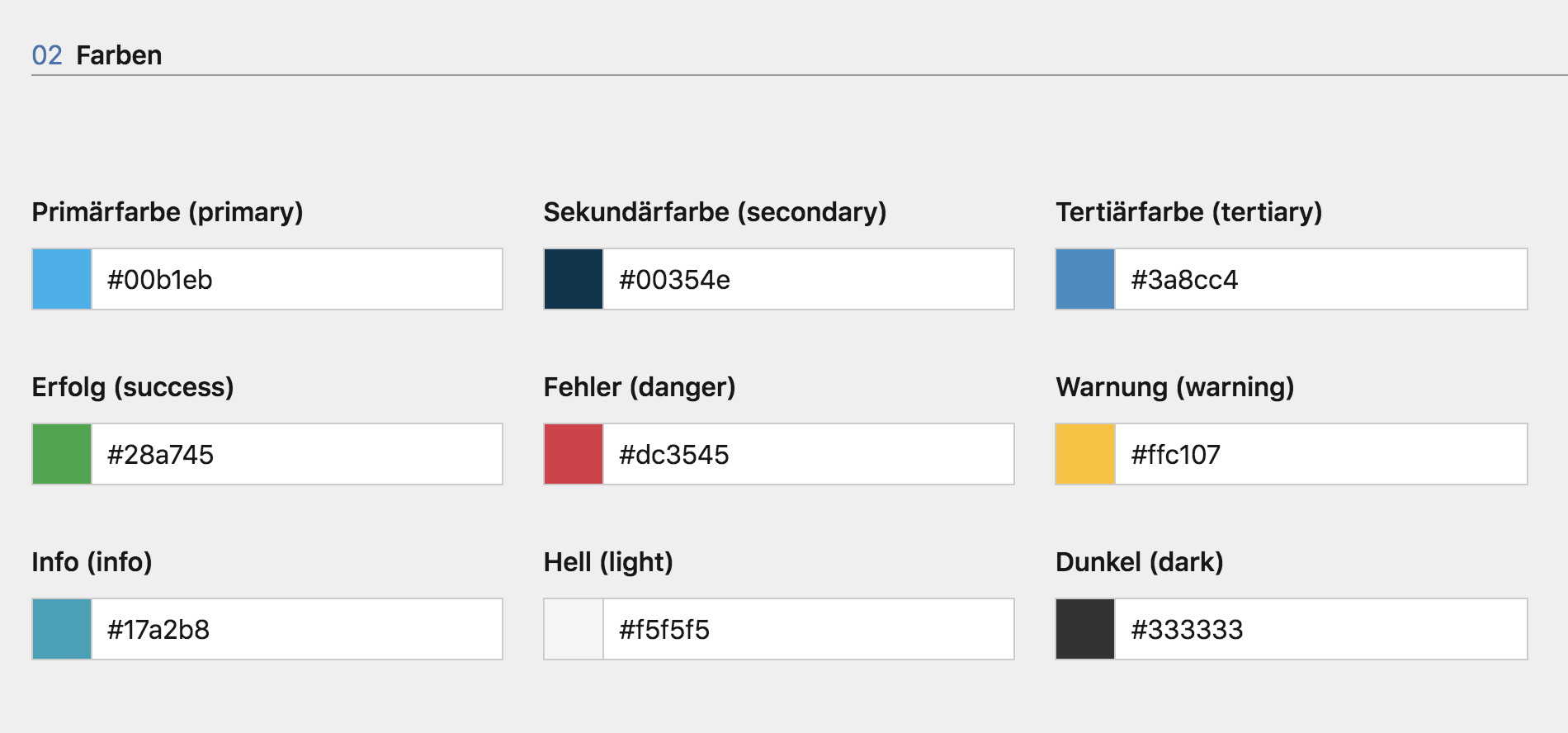 The field will pick up the colors from the page settings and play them back anywhere. The special thing is that it does not save a color value but exactly what is predefined, in our case, the color is displayed, but a CSS class output. This can be especially useful when working with bootstrap. On hover there’s a tooltip which class is the output.