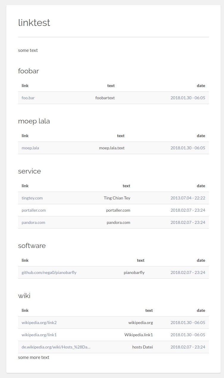 - when you use the new snippet tag in any of your pages, you will get a table of link collection.